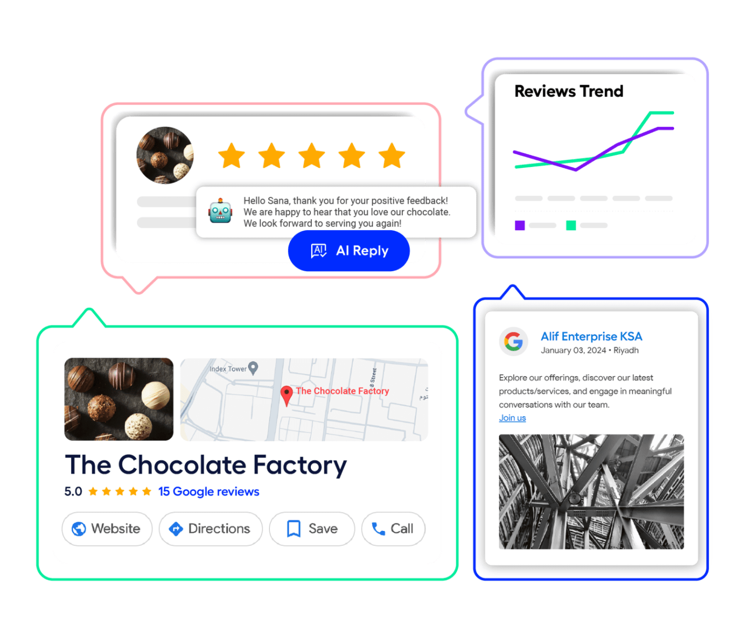 Engaging in meaningful conversations with your customers has never been this easy. By managing all your Google reviews in one integrated platform, you can drive more brand loyalty and boost your organic rankings.